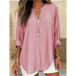 ✔ Stilfulde detaljer:Med sin V-udskæring giver denne bluse ethvert outfit et strejf af elegance og modernitet. De diskrete accenter og det gennemtænkte design gør det til et iøjnefaldende stykke, der passer perfekt til din egen stil.